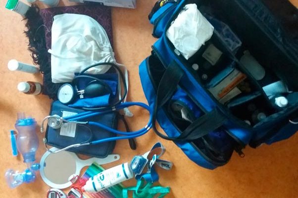 Jedním ze základních úkolů je vytvořit si systém, který vám umožní se ve svém vybavení dobře orientovat, kdy se vám nestane, že u klientky postrádáte cokoli důležitého a zároveň že při odjezdu něco nezapomenete. Taška s vybavením by měla být lehká, ale pevná, nejlépe omyvatelná a voděodolná. Možností, jaký druh tašky si vybrat, je bezpočet a nemusí to být vůbec taška určená primárně pro zdravotníky, ale může se jednat klidně o tašku pro sportovní vybavení. Důležité je, aby se do ní lehce vešlo vše, co potřebujete, a abyste ke všemu jste měly dobrý přístup, který nejlépe zajistí dlouhé zipy, díky kterým je možné tašku zcela otevřít. Také je důležité, aby každé vybavení mělo své místo a bylo lehce dosažitelné bez zbytečného hledání a přehrabování. K tomu může pomoci dostatek kapes a příhrádek. Vzhledem k tomu, že taška může být docela těžká, je dobré myslet i na to, jakým způsobem se přenáší (jaký má popruh, může mít kolečka apod.)